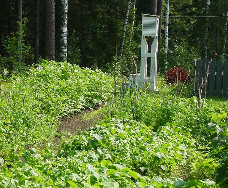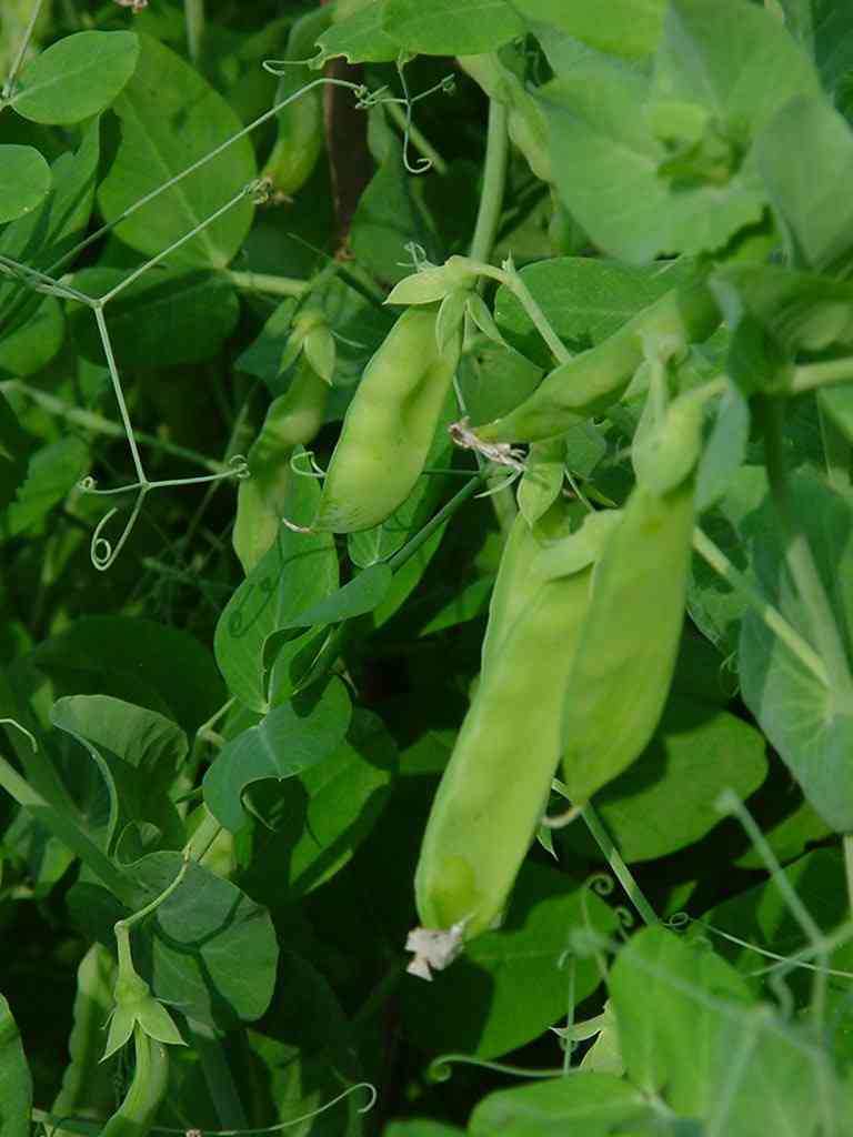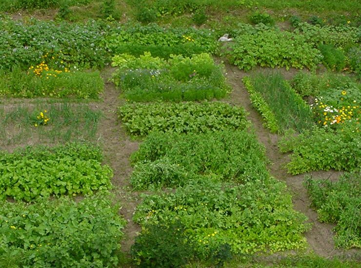 | 1.7.2003 herneet olivat vielä pieniä | Noin kuukautta myöhemmin 28.7. kasvimaa tuottaa jo satoa. |