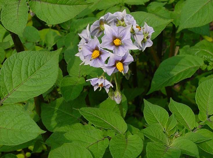 | 18.7. peruna oli jo täydessä kukassa | Perunan ratasmainen kukka. (lajike Congo Blue) | Silkkiunikko on ensimmäisiä kesäkukkia. |